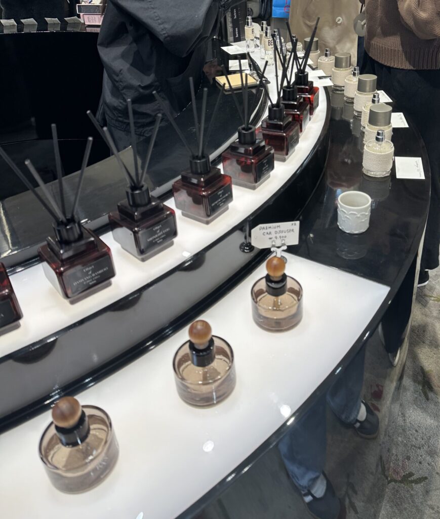 ディフューザーや車用フレグランスなどが揃っていて、