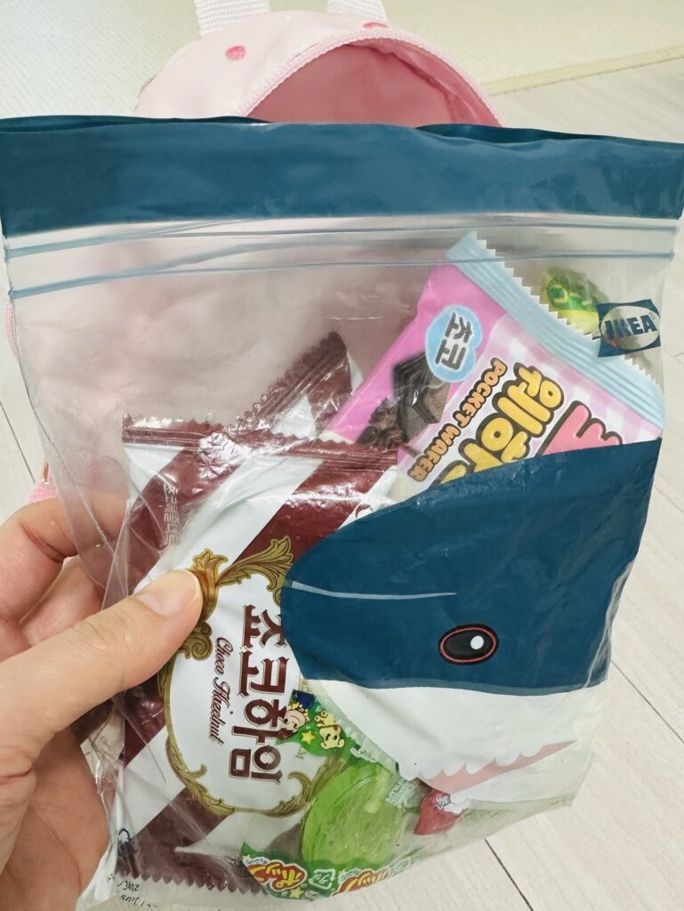 我が家では、食べたいお菓子を子ども自身に選ばせて持っていきます。