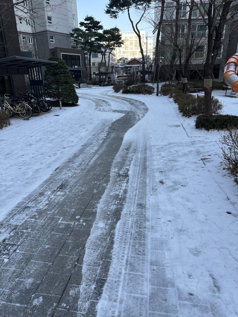 韓国の冬道は本当に油断すると危ないので、みなさんはくれぐれもお気をつけください。